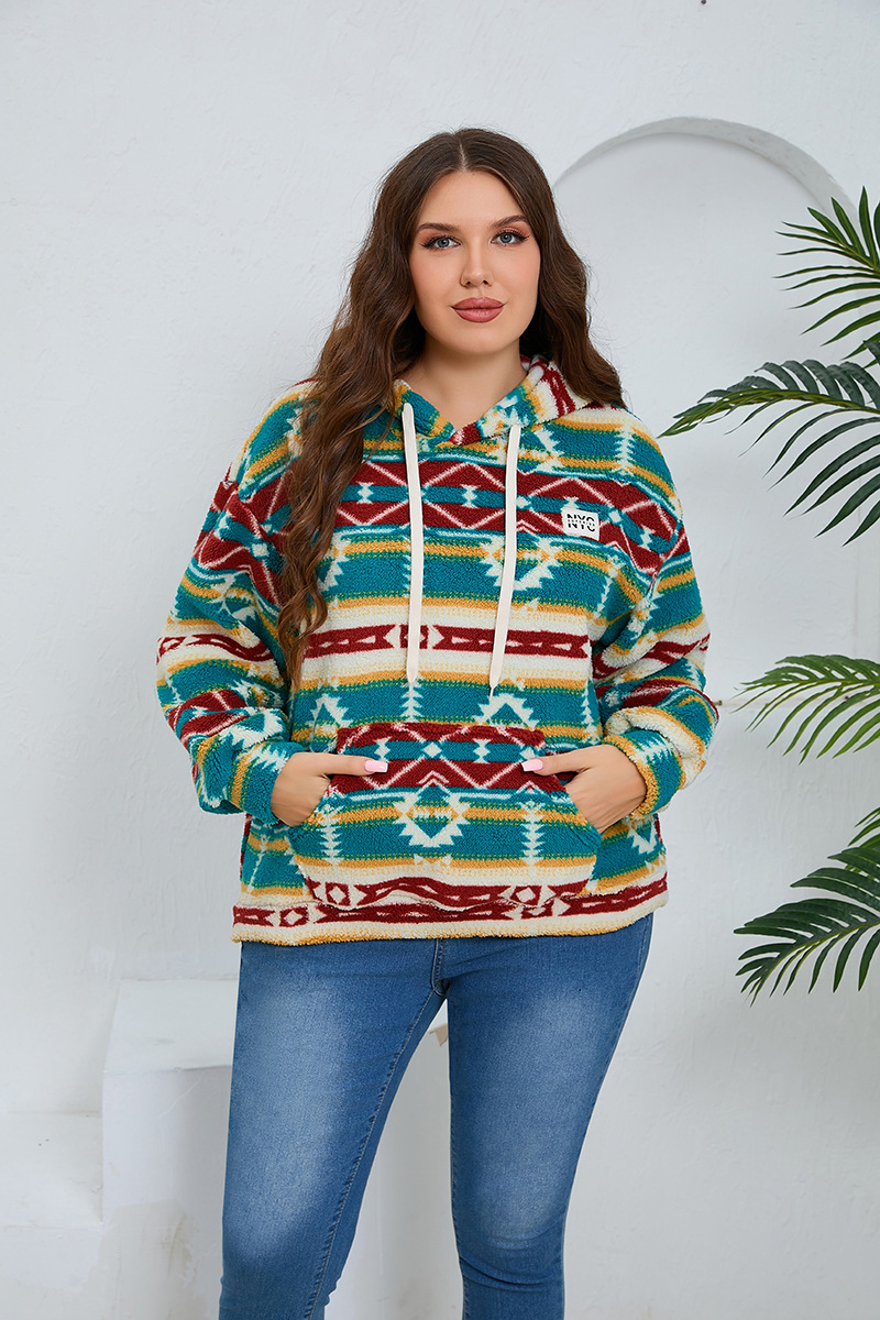 Loose Casual Long Sleeves Plush Large Pocket Top